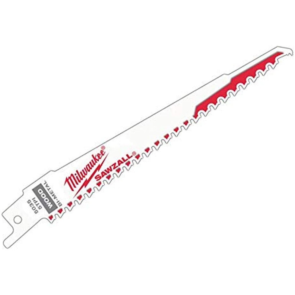 Product Description Reciprocating Saw Blade, Primary Saw Application Nail Embedded Wood, Length 6 In., Teeth per Inch 5, Material Bi-Metal, Back Tapered, Shank 1/2 In., Height 3/4 In., Application Very Fast Cutting, Nail Embedded Wood, General Roughing-in, Package Quantity 5 From the Manufacturer Super Sawzall blades are made with Matrix II high speed steel teeth containing 8 percent Cobalt to keep a sharper tooth edge longer. The tough Bi-Metal design allows faster cutting, longer life blades that can bend without shattering. Milwaukee designs and manufactures Sawzall blades for the toughest professional applications. Materials, tooth configuration and heat treating are designed to maximize performance in specific cutting applications. Durable, long life blades are the goal of every blade we make. This blade has a 1/2 inch universal tang that fits all Sawzalls and standard competitive saws. Includes five individual blades.