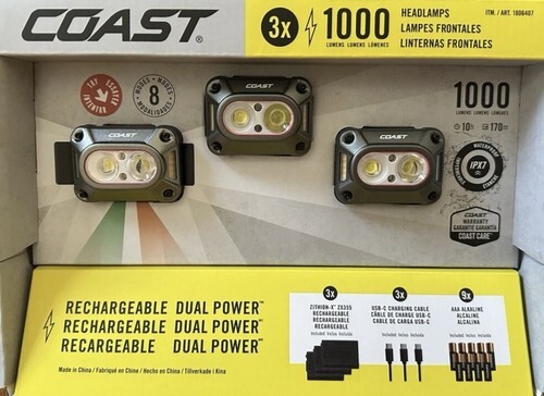 Do more with less. The FL20R rechargeable headlamp makes compact hands-free lighting even more useful with dual color LEDs and the Coast Ultra-Strap which enables the headlamp to be worn, hung, or strapped to structures. The white Wide Angle Flood Beam shines in three modes medium, high, low and the anti-glare red LEDs prevent night blindness and reduce the headlamp's visibility in the surroundings. With a 25-hour run time on low, this Dual Power headlamp is powered with an embedded rechargeable lithium-ion battery. Practical features include an anti-slip, silicone-lined head strap, a hinged beam for directional lighting, and an IP54 dust resistant and storm proof build.