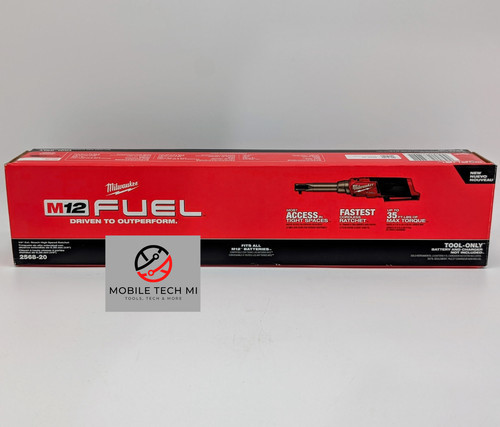 The Milwaukee M12 Fuel insider extended reach box ratchet is a new-to-world solution that reinvents the traditional ratchet. The low-profile head design allows sockets and adapters to insert directly into the tool. The M12 Fuel insider delivers unrivaled access and over 3/4 in. shorter head profile size with the socket to reach deep into the engine bay and fit into the tightest spaces. The insider delivers the combination of 60 ft. lb. of max torque and 350 rpm to remove stubborn fasteners and complete more work faster. Mechanics will experience the ultimate versatility with the provided Milwaukee insider box ratchet sockets (8 19, and 21 mm), 1/4 in. hex bit, 1/4 in. anvil adapter, and 3/8 in. anvil adapter to tackle any job in the shop. The box ratchet 6 point sockets are pass through up to 15 mm and 9/16 in. to run nuts on threaded rod and eliminate the frustration of sockets bottoming out. The M12 Fuel insider extended reach box ratchet is part of the M12 system, which is fully compatible with over 150 solutions.