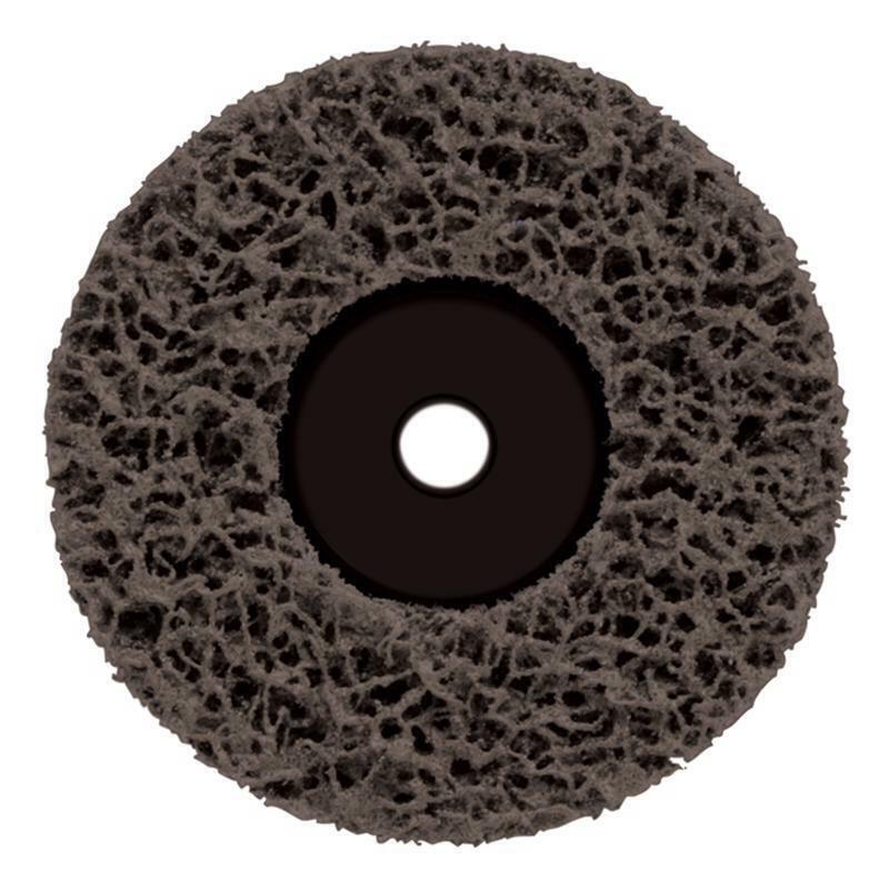 High-performance, spun-fiber 3M disc aggressively removes paint yet is gentle on surfaces