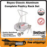 The Bayou Classic poultry rack set fits any size turkey fryer. The complete poultry aluminum rack set takes the backyard chef on an outdoor cooking adventure from prep to carve.