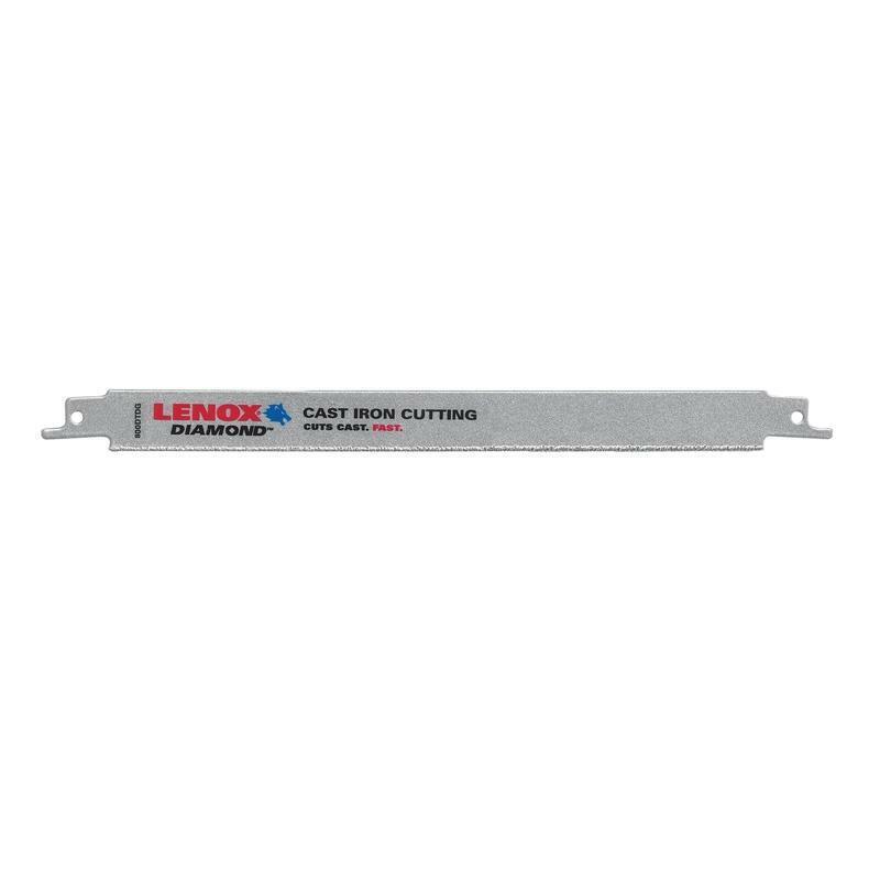 Lenox Double Tang Diamond Reciprocating Saw Blades feature a durable chrome alloy backing and has a narrow kerf design that facilitates faster cuts. Blade renders sharp, clean cuts and is ideal for cast iron, tile, brick and natural stone.