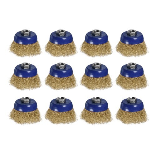 Gator cup brush crimp brass coated carbon steel wire 3in. Ideal for edges, paint scale, and light rust removal on flat or irregular surfaces.