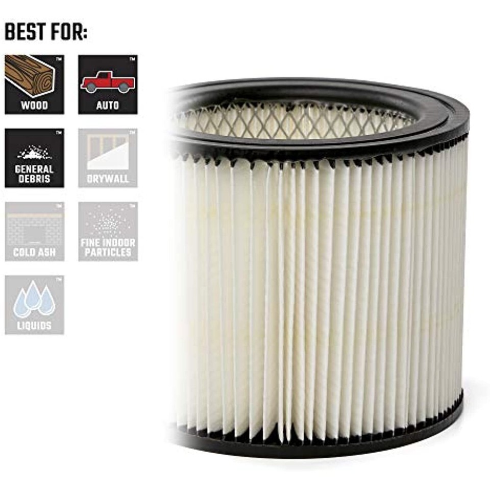 DESIGNED FOR DRY PICK-UP: Replacement filter for dry debris and dust pick-up only