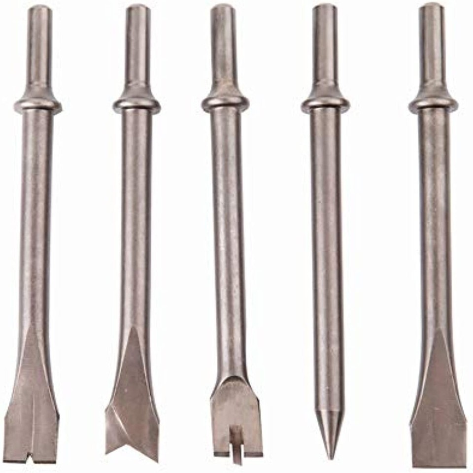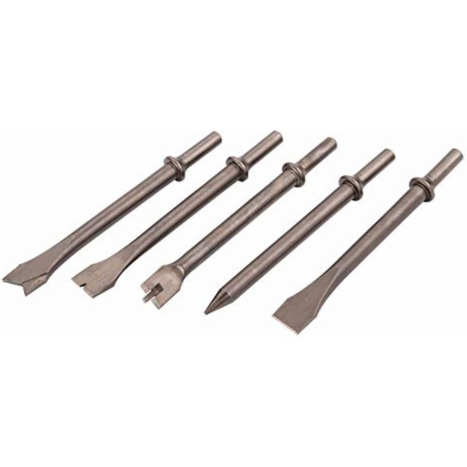 This 5-piece chisel set is a great accessory for our air hammer. Works great for light duty demolition like removing ceramic tile, chipping off mortar and ripping up flooring. Additionally, it works well in the automotive industry to help free stubborn bolts or separate corroded parts.