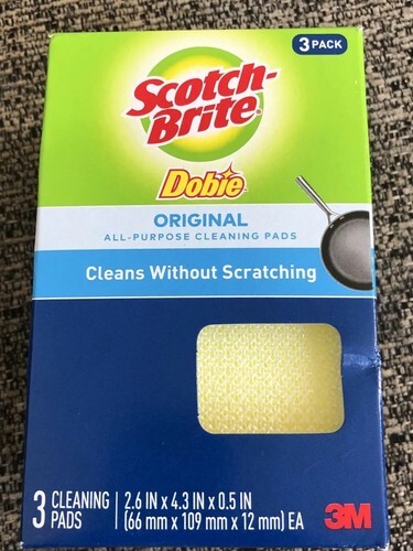 Dobie all-purpose cleaning pad scours without scratching. Safe for Silverstone and Teflon-coated cookware. Use in kitchens, bathrooms and automobiles and on carpets, clothing and hands.