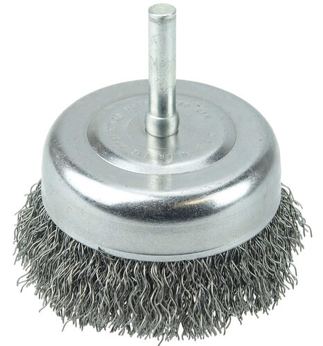 Gator fine crimp brass coated carbon steel wire cup 3 in. Ideal for edges, paint scale, and light rust removal on flat or irregular surfaces.