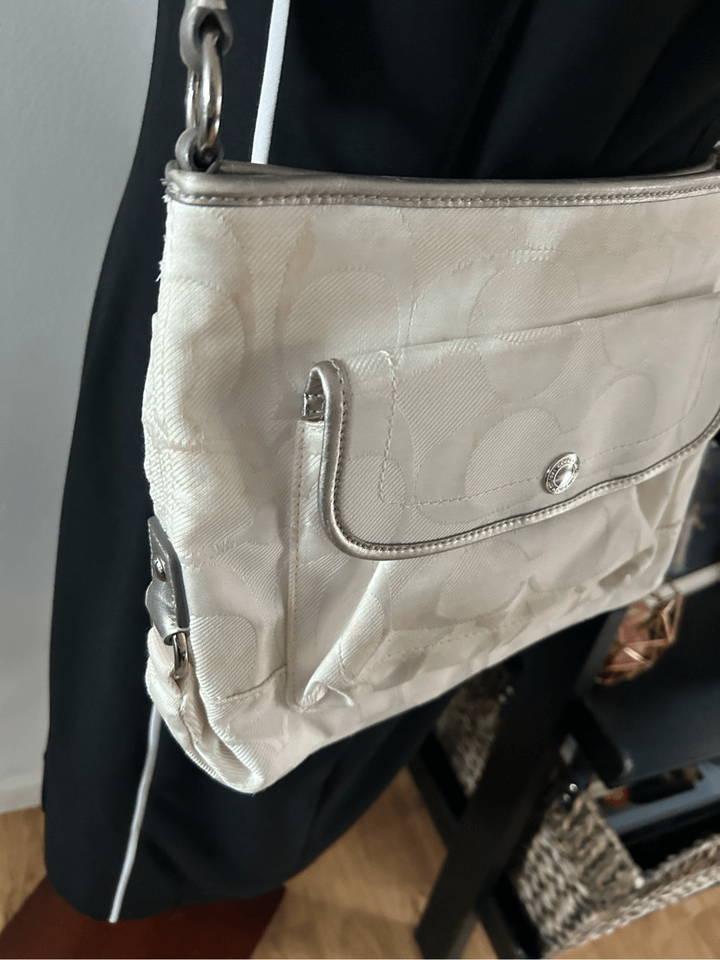 Coach Kyra Daisy Crossbody Shoulder Bag White & Silver F19713