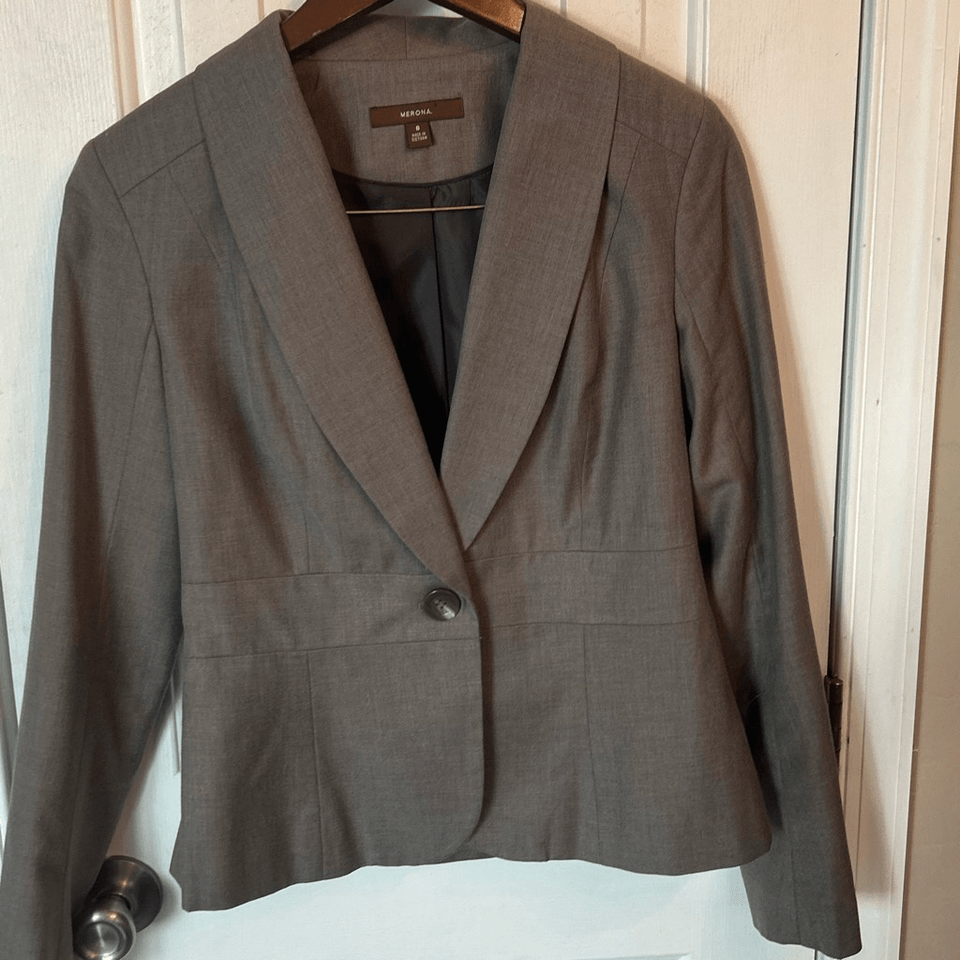 Merona gray/brown blazer size 6 with cinched waist work attire work blazer