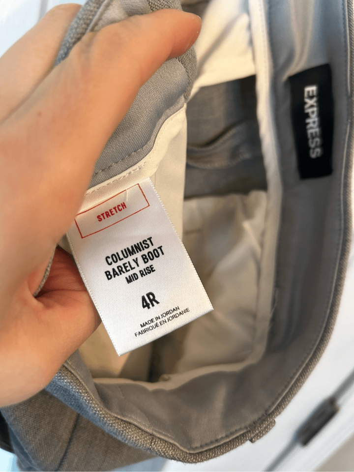 Express pants stretch size 4 regular but they have been hemmed. Measurements are inseam is 28 inches to bottom is 38 inches. Waste is 15 tips are 20 inches.