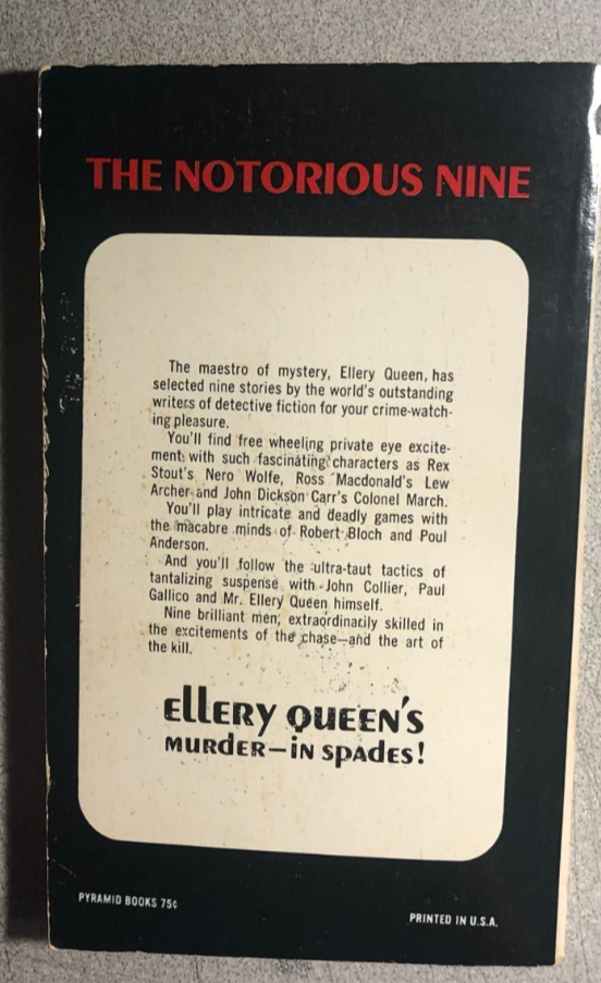 ELLERY QUEEN'S MURDER--IN SPADES! anthology (1969) Pyramid mystery paperback 1st