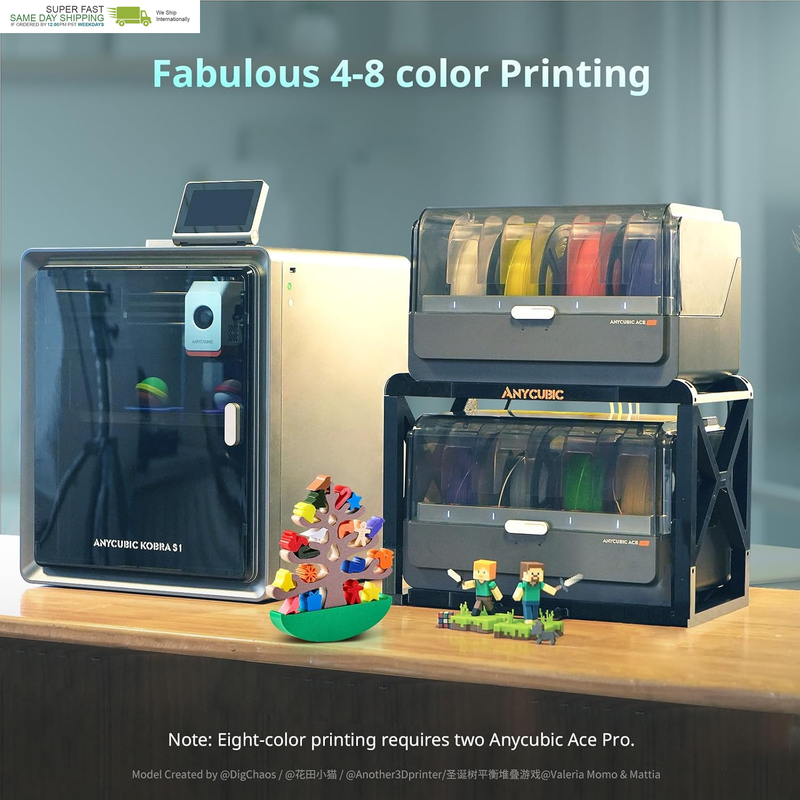 ?Vibrant Multi-Color Creations? Unleash a spectrum of colors without post-processing. Anycubic ACE PRO delivers seamless 4-color prints solo, and connecting two units unlocks an incredible 8-color palette for your most ambitious projects.