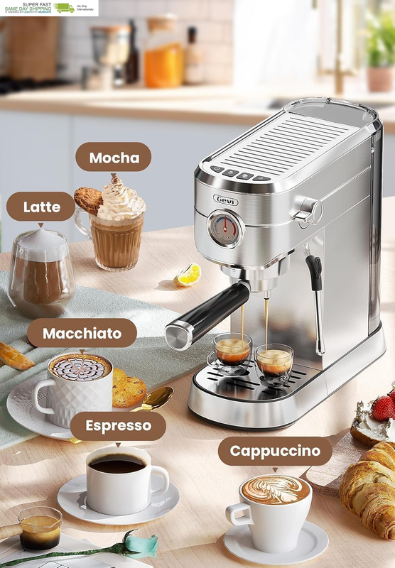 ??????? ?????? ?????????? - Equipped with a 20-bar pump, NTC temperature control, pre-infusion feature, and a pressure gauge, the Gevi stainless steel espresso coffee machines with a milk frother allows you to craft a range of cafe-quality beverages. From Mocha to Macchiato, Espresso to Americano, this expresso machine is not only ideal for home or office use but also makes a perfect gift for father, friends, and loved ones.