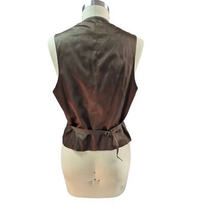 VTG Plaid Wool Vest Art Multi Button Design Olive Green Satin Back M Unisex