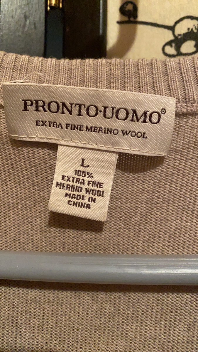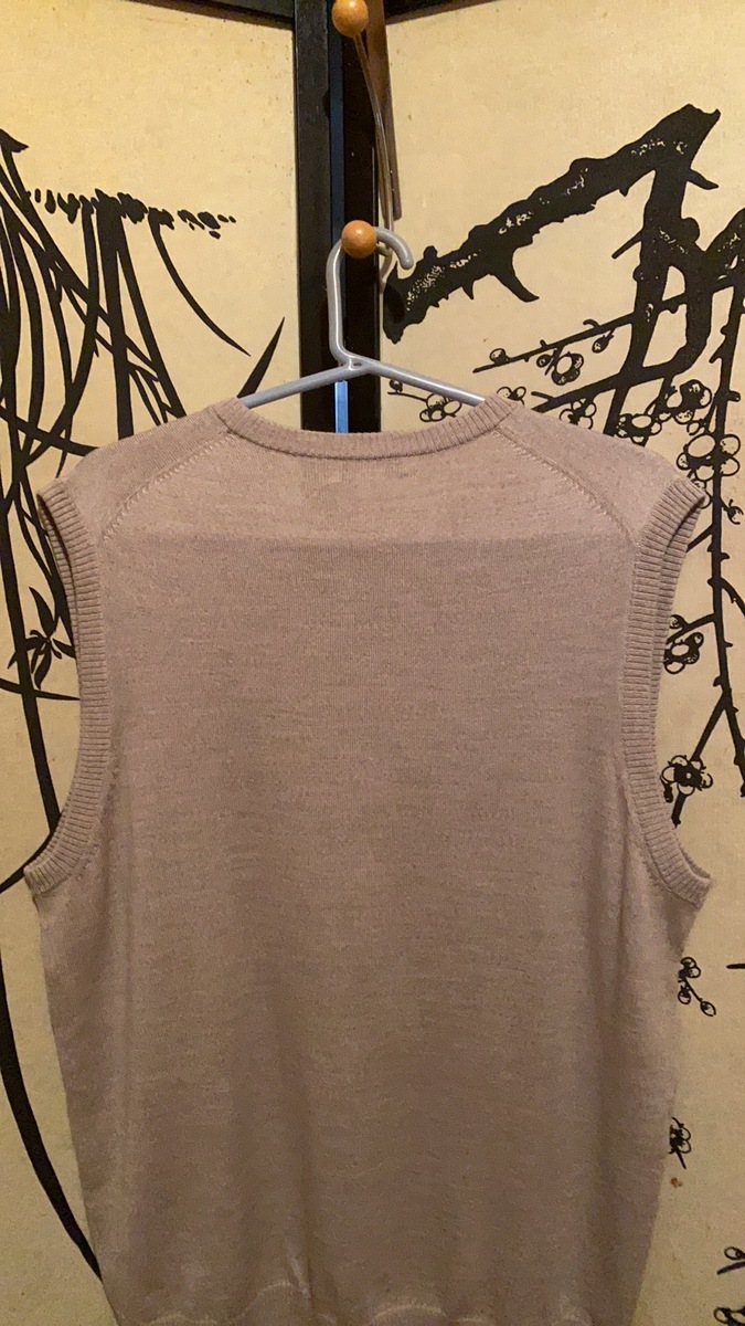 Pronto Uomo Men's Khaki Knitted Vest 100%Extra Fine Merino Wool Pullover