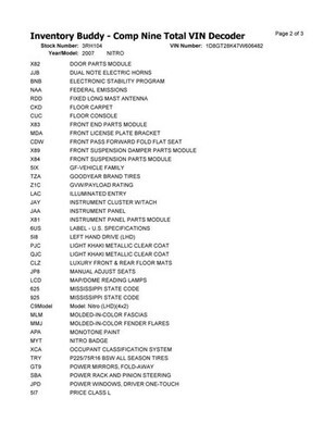 Explanation of damage codes in part notes: