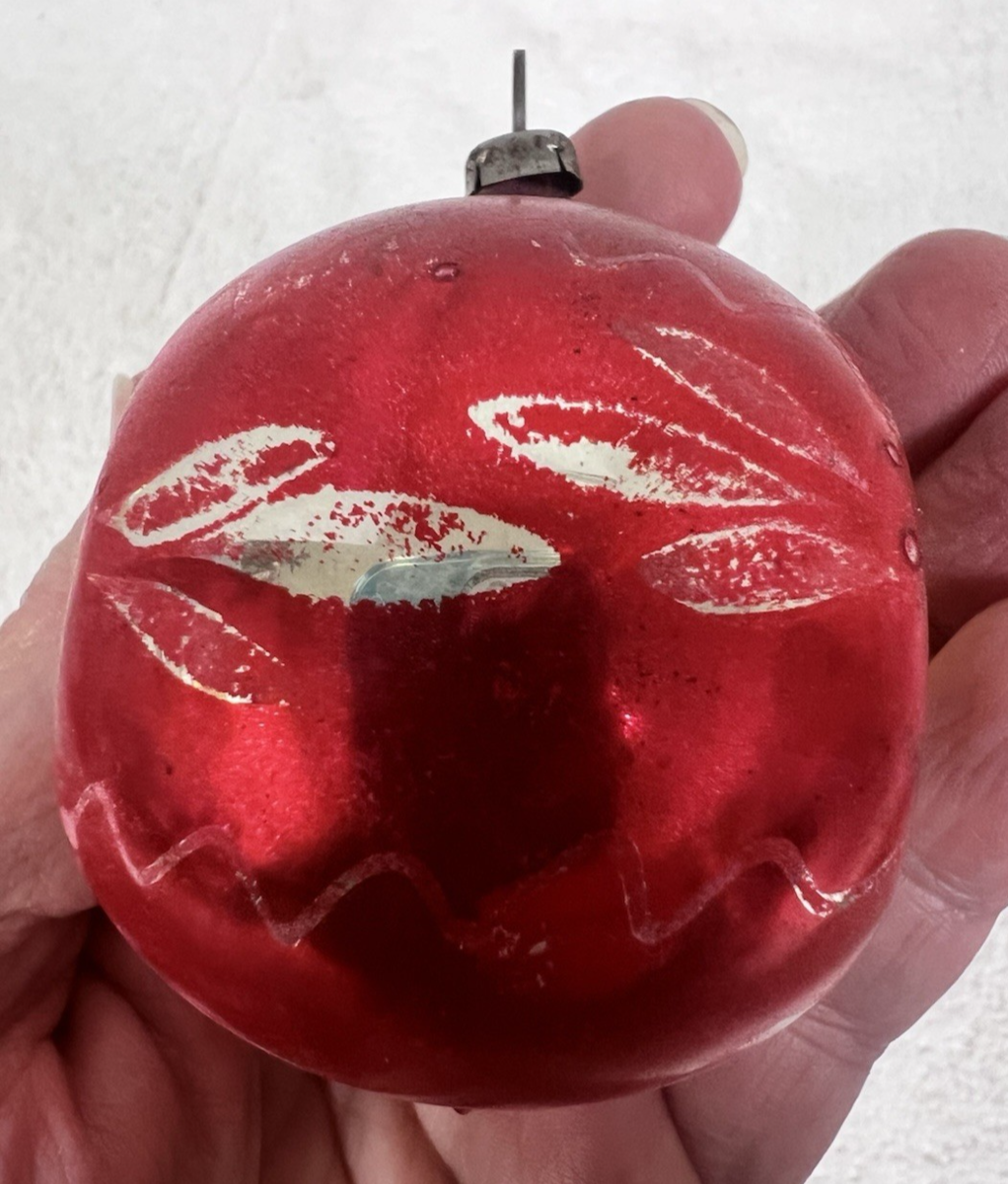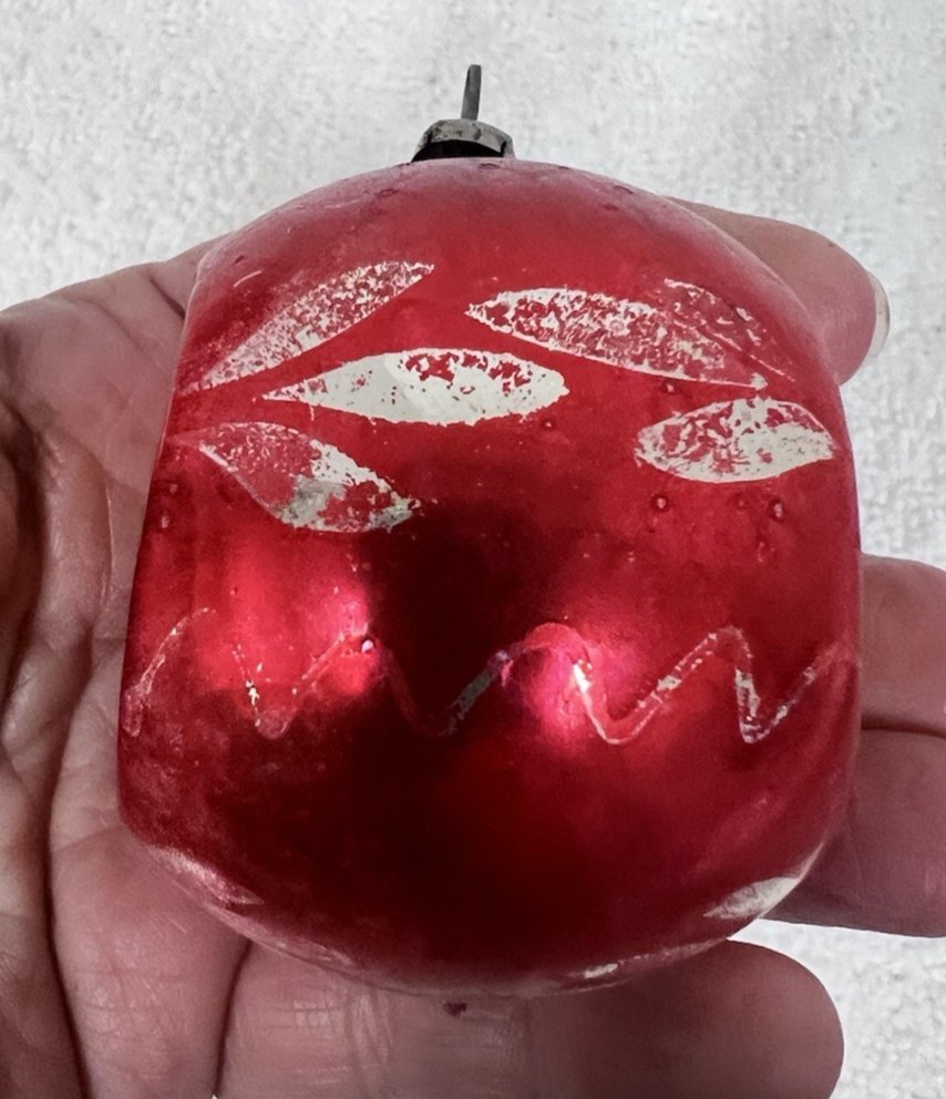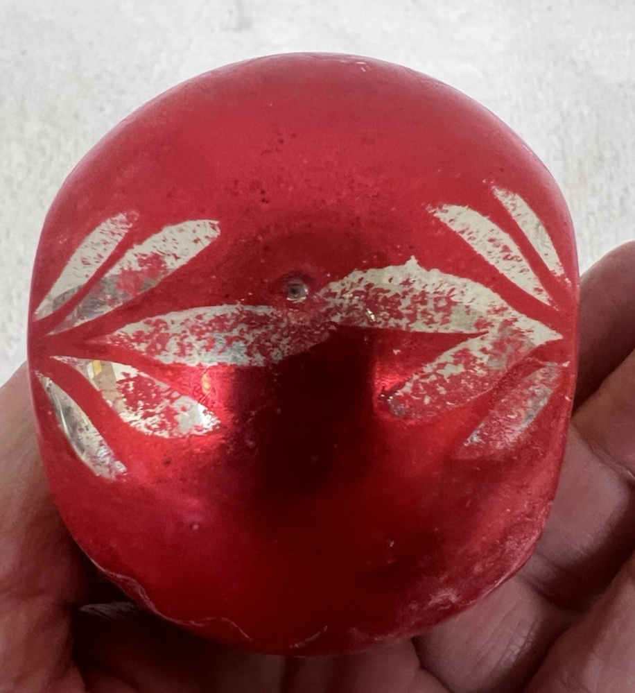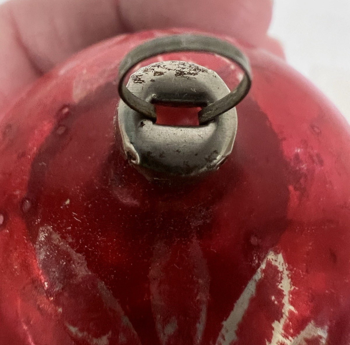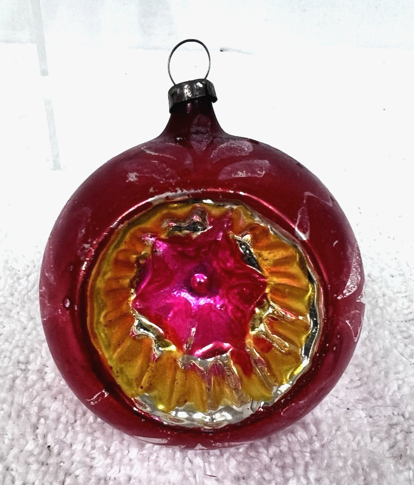 Vintage Pink Yellow Red Double Dent Hand Painted Glass Christmas Ornament 2 3/4" some paint loss/wear but bright and fun