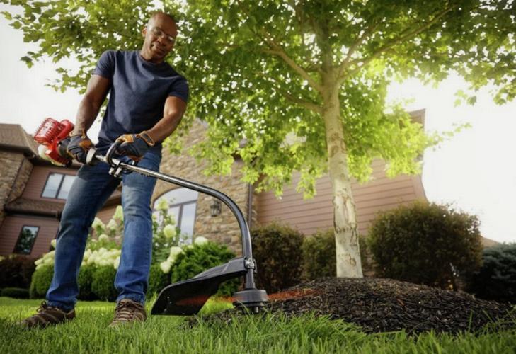 The TB25CB Troy-Bilt 25cc 16" Curved Shaft Gas String Trimmer features a 25cc, 2-cycle lightweight engine that is comfortable for everyone. It comes with a dual-line bump head with .095" line for precise cutting. SpringAssist technology allows for easier pull starts, while the multi-position adjustable handle reduces vibration and operator fatigue. The curved shaft provides a clearer view of the trimming area and evenly distributes weight for balanced and comfortable cutting.