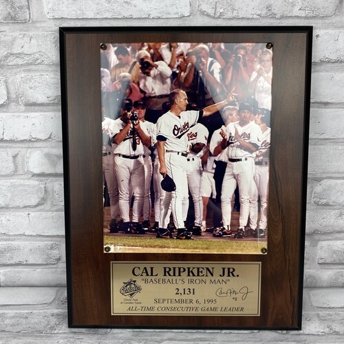 Cal Ripken Jr #8 Baseball's Iron Man Wood Brass Photo Plaque Sept 6 1995 Orioles