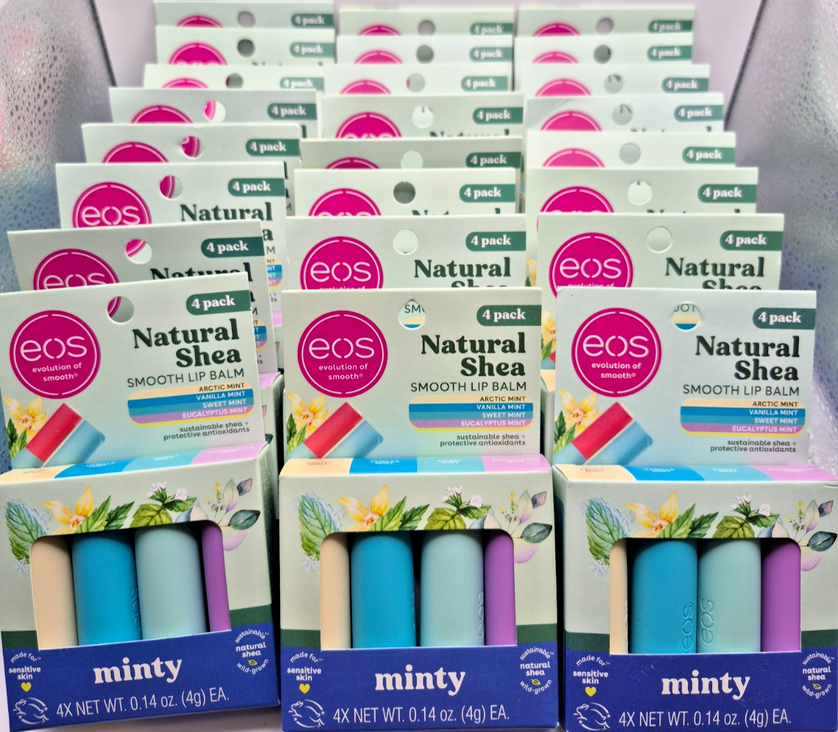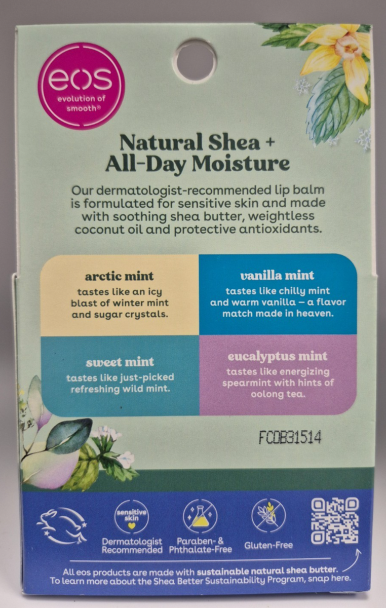 eos Natural Shea Smooth Lip Balm, Minty, Variety 4 Pack - LOT OF 24