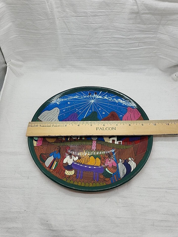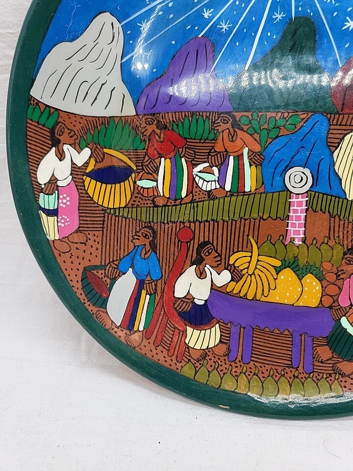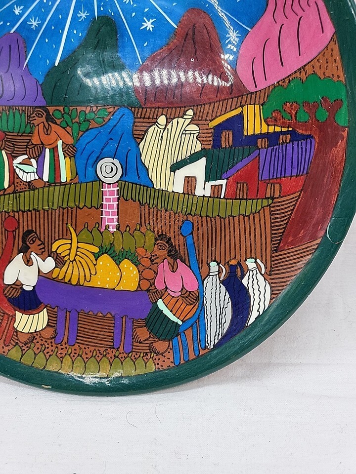 Mexican Folk Art Plate, Red Clay Story Market Dish Vibrant No Damage