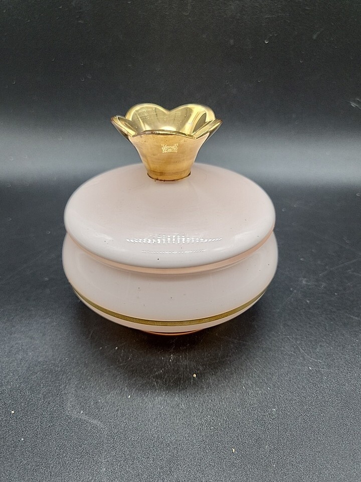 Vintage Irice Pink Glass Vanity Jar Gold and similar items