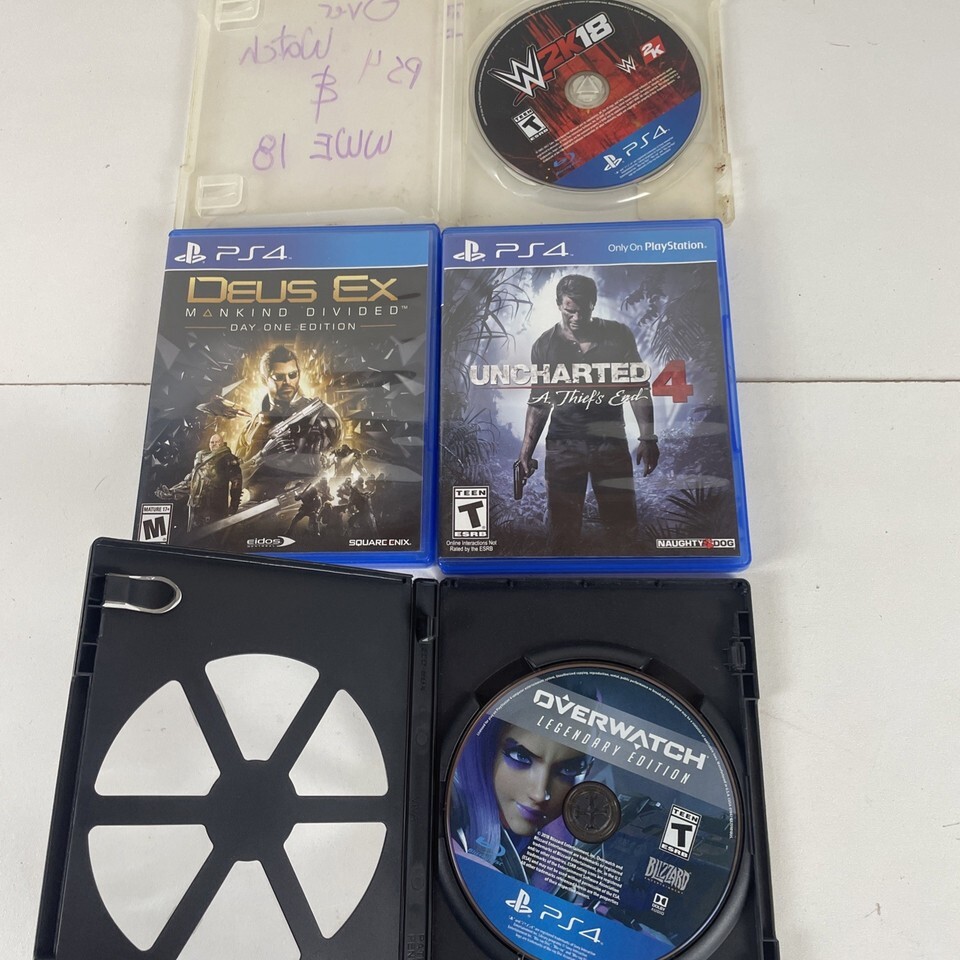 PlayStation 4 Video Game Lot Uncharted 4 A Thief's End Deus Ex Overwatch PS4