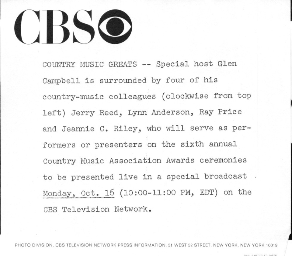 Jerry Reed Glen Campbell Country Music Greats Press Photo CBS Program CMA 1972