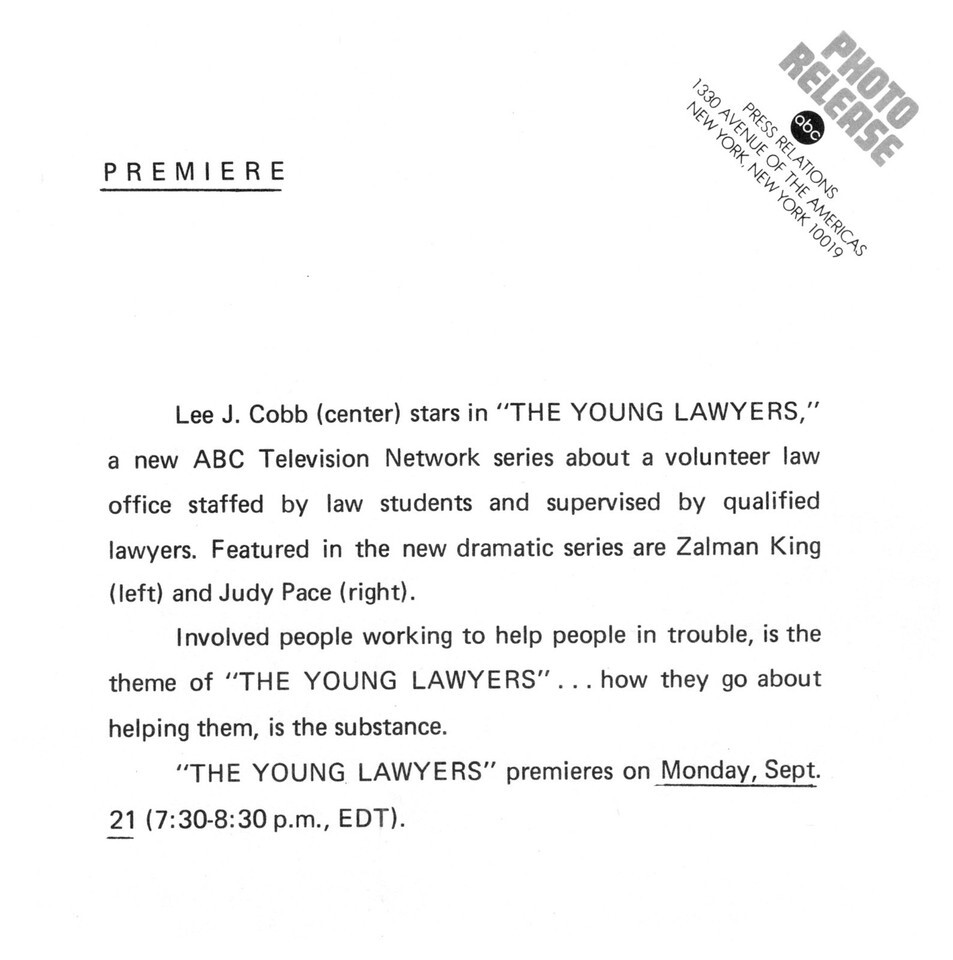 Lee Cobb Judy Pace Young Lawyers Press Photo and 21 similar items