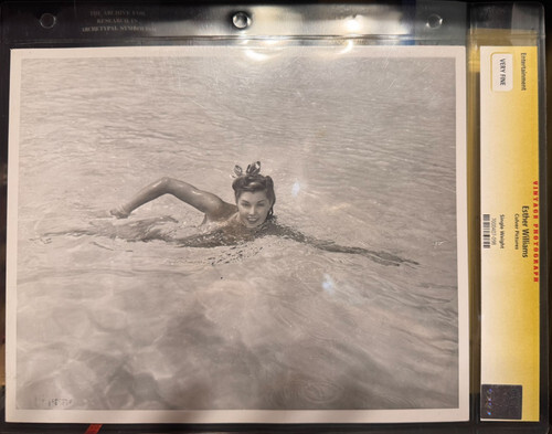 measures ~7.5x9, photo is curled/bowed, is unframed, remains a very glossy print, has press release info glued to back of photo
