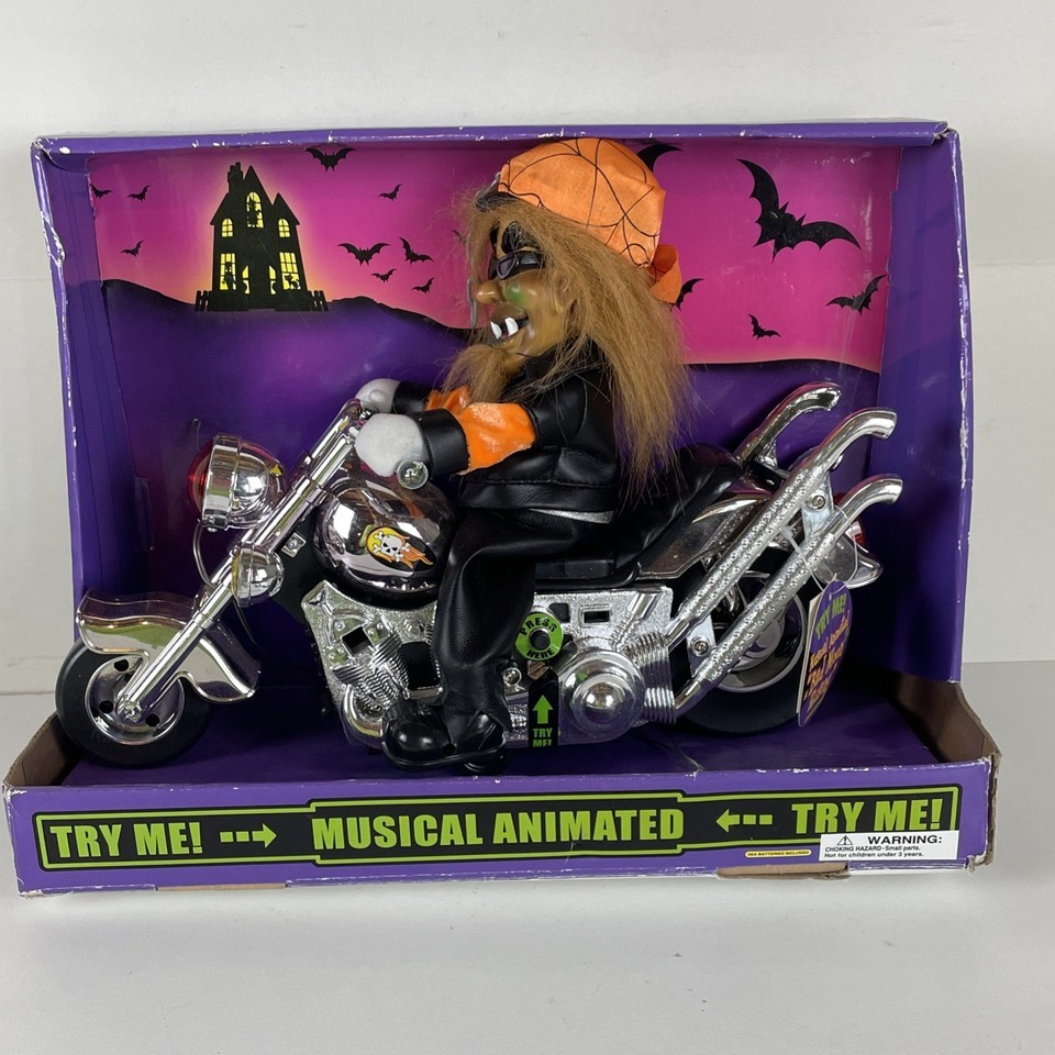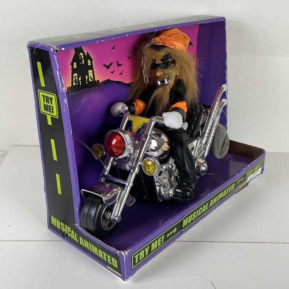 Halloween Alley Musical Animated Bad Moon Rising Werewolf Biker Motorcycle New