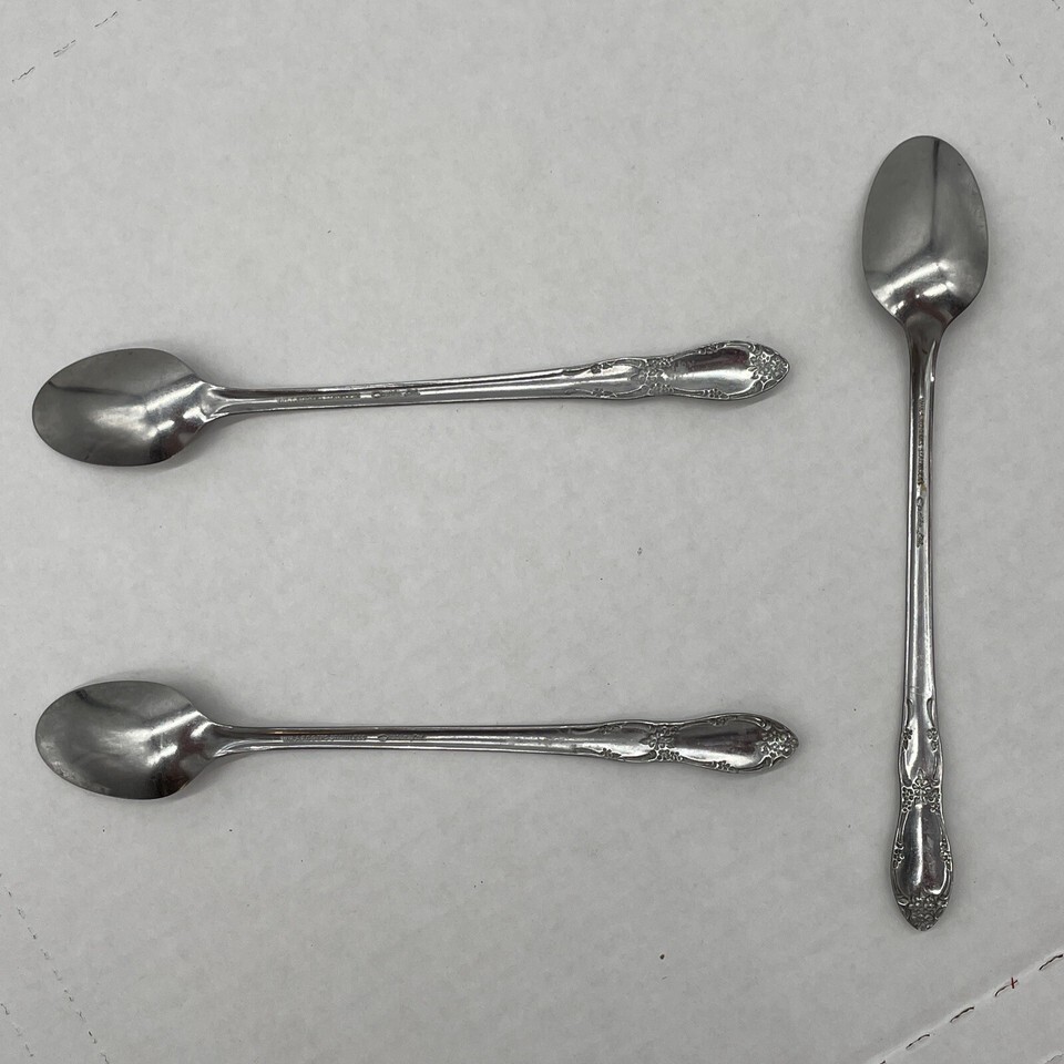 Fenway Daydream Lot of 3 Oneida LTD Wm A. Rogers Stainless Iced Tea Spoons