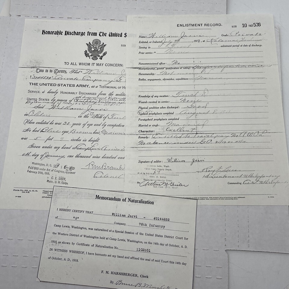 WWI 76Th Infantry Group Picture and Copies of Military Records for Soldier