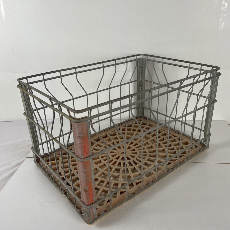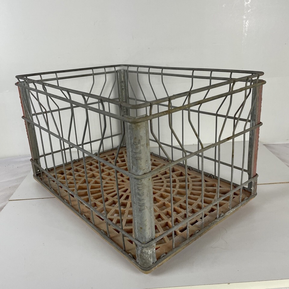 Iowana Dairy Vintage Rectangular Metal Milk Crate 18.5x12.5x11"