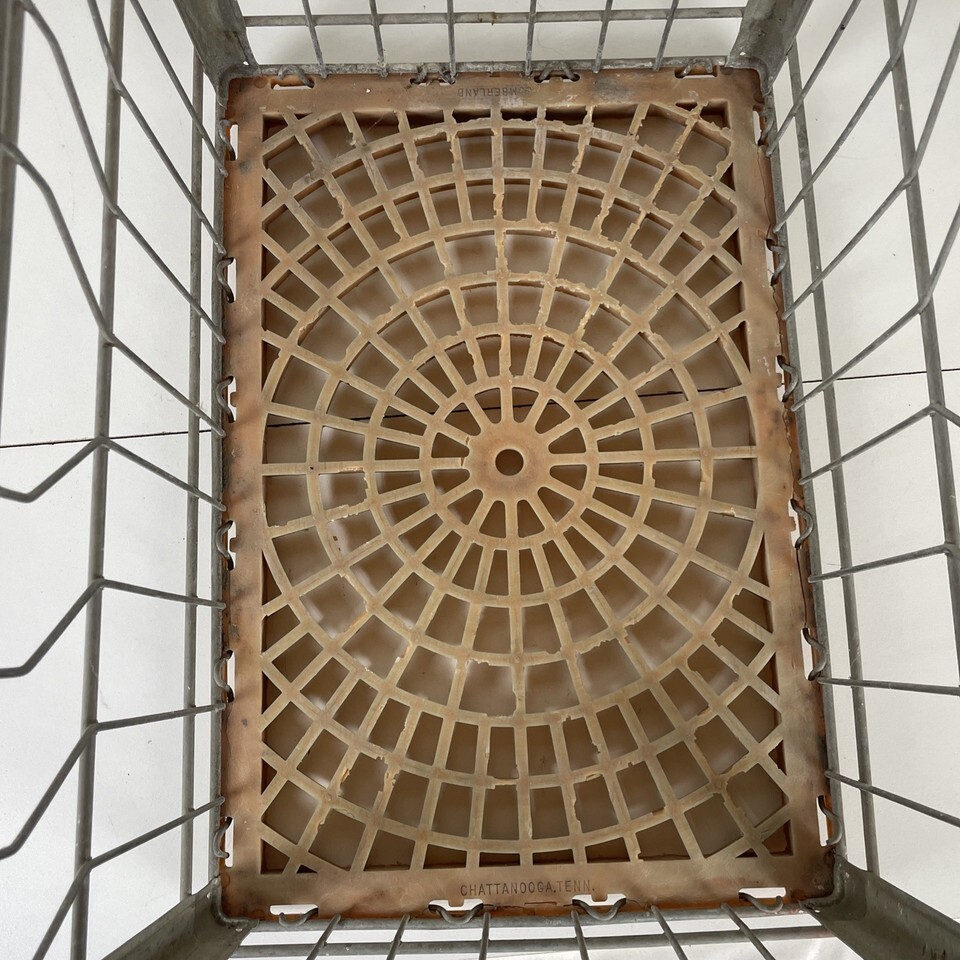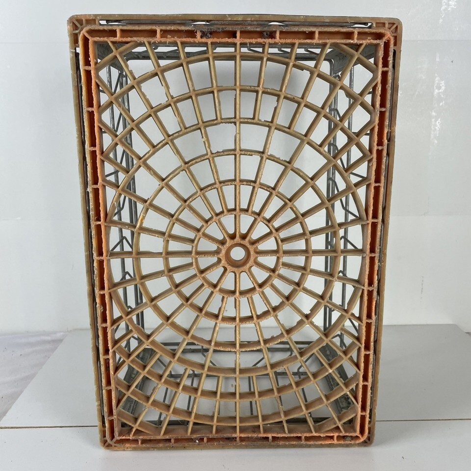 metal wire walls with a hard plastic base; base is solid but shows some chipping from prior use