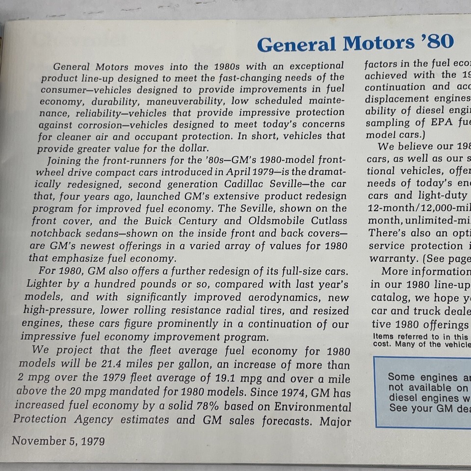 Original 1980 General Motors Full Line Sales Catalog Brochure Cars Trucks Vans