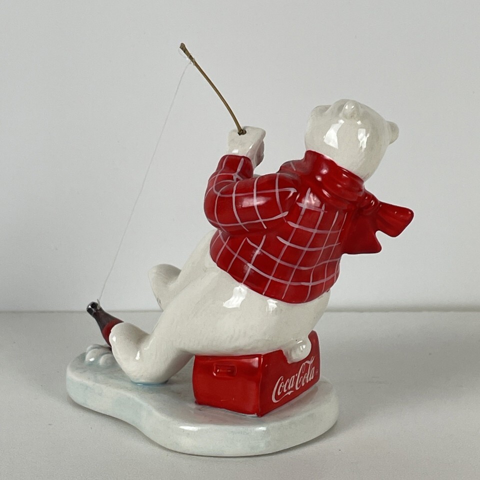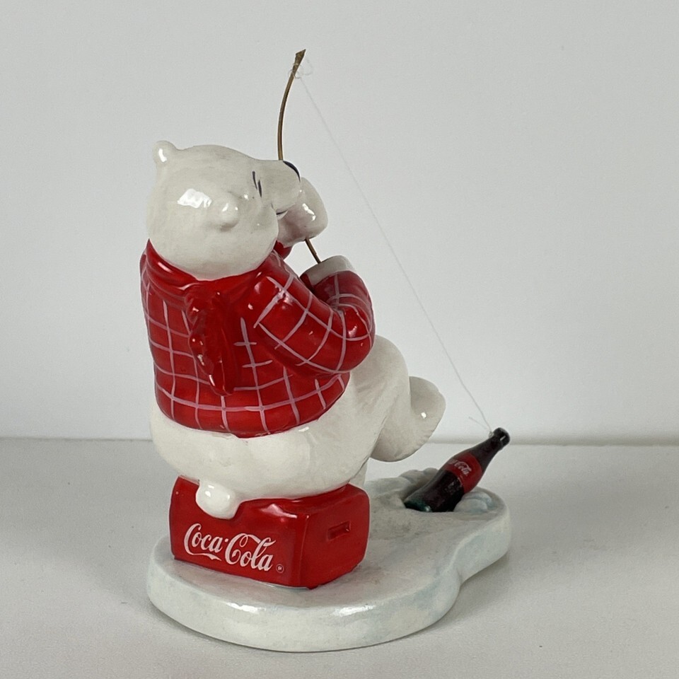 Coca-Cola Always Ice Fishing Ceramic Polar Bear Figurine - Vintage 1995
