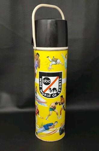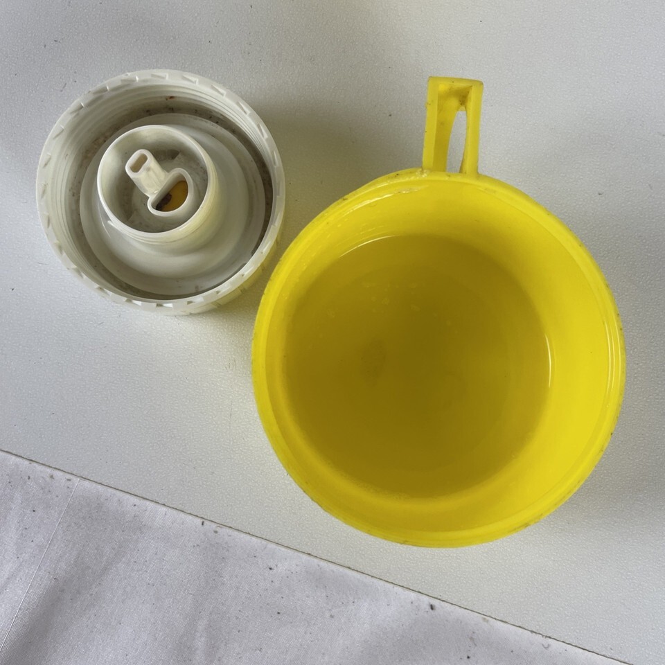 heavy paint loss on character, sides show signs of scratching from storage / prior use, complete with screw lid and cup