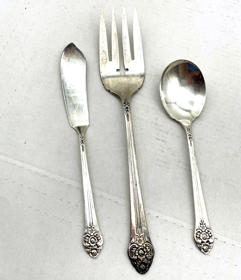shows minor wear consistent with prior use; may need silver polish for spots of tarnish