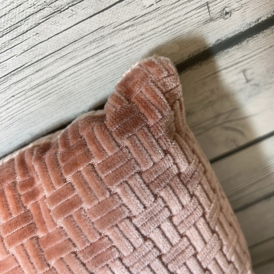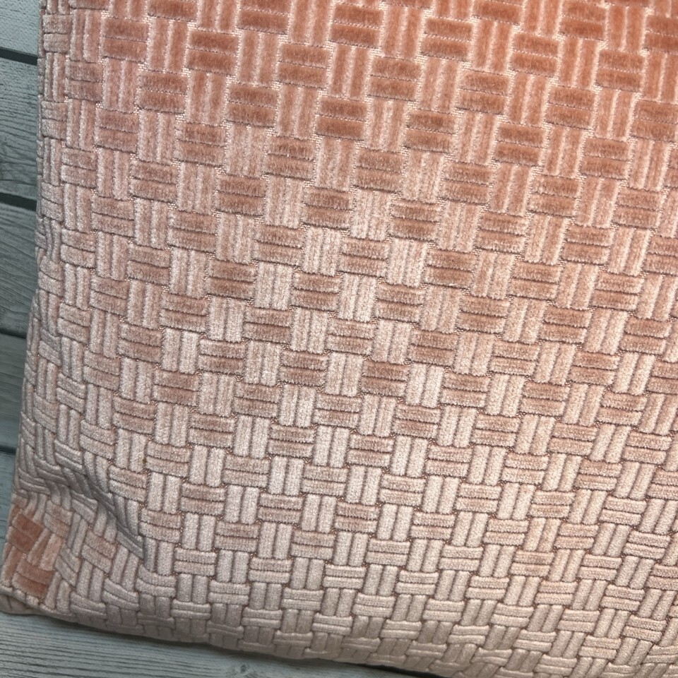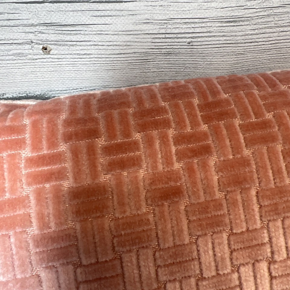 Elevate your home decor with this exquisite Vintage MCM pink Weave Velvet Velour Cut Out Throw Pillow. The cushion is a perfect blend of elegance and comfort, featuring a stunning basketweave pattern in a soothing multicolor palette that complements any room's aesthetic. Measuring 14"x14", it's the ideal size for a cozy accent on your sofa, bed, or chair.