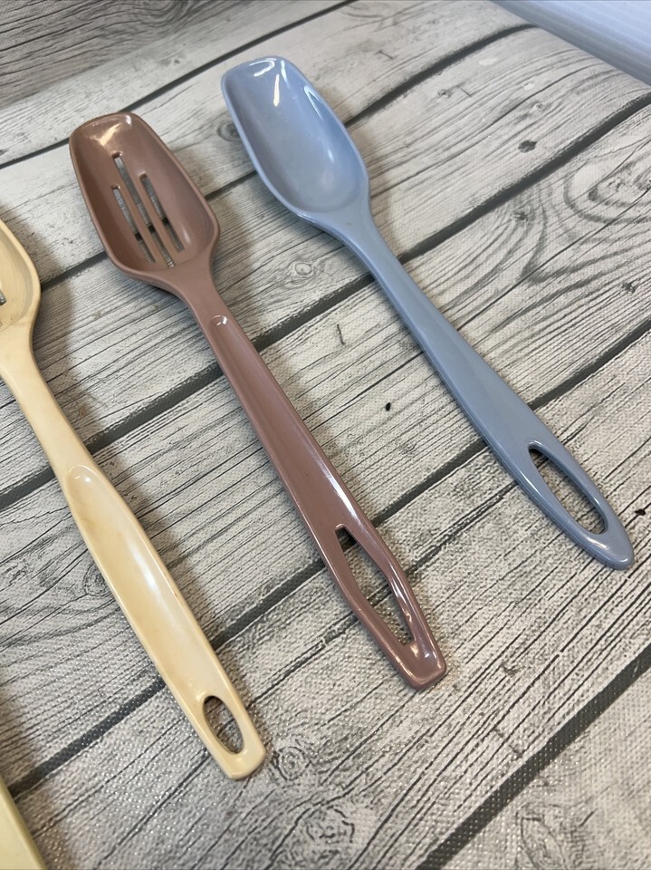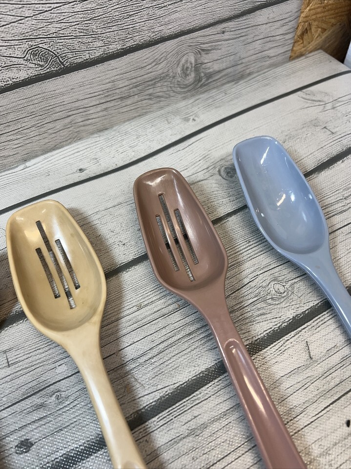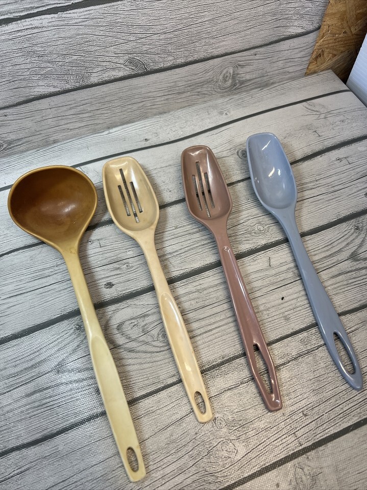 4 Vtg Foley & other brands Kitchen Utensils blue, pink & alkond Spoons ladle