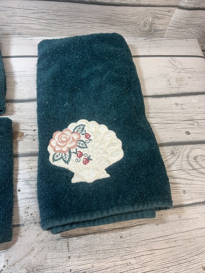 Vintage Shells Cannon 1 Bath 1 Hand Towel 2 Wash Cloths Set Cottage