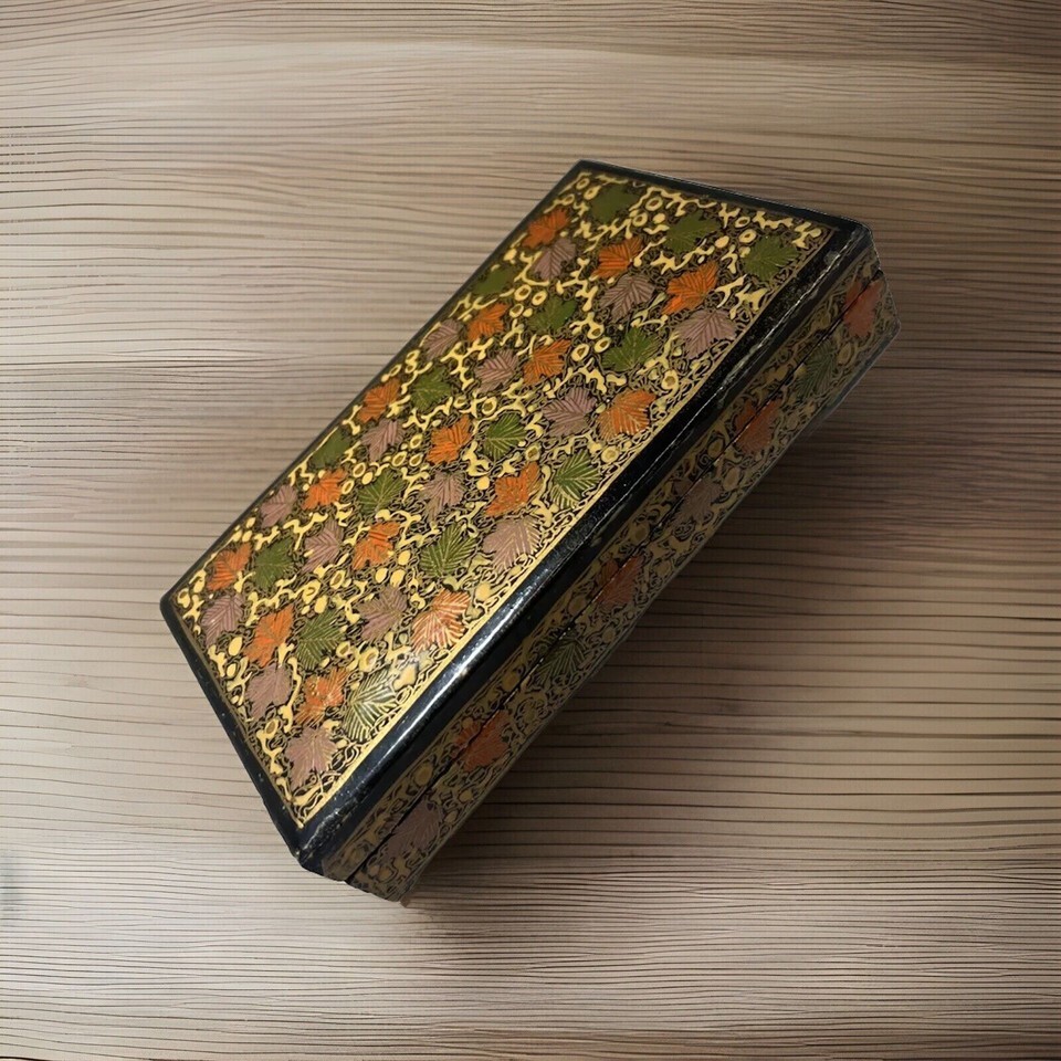 Vintage Chinese Wood Trinket Box Black/Gold Leaves