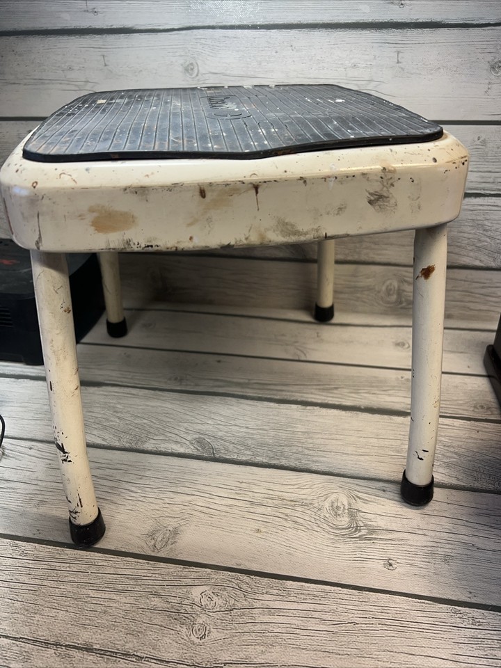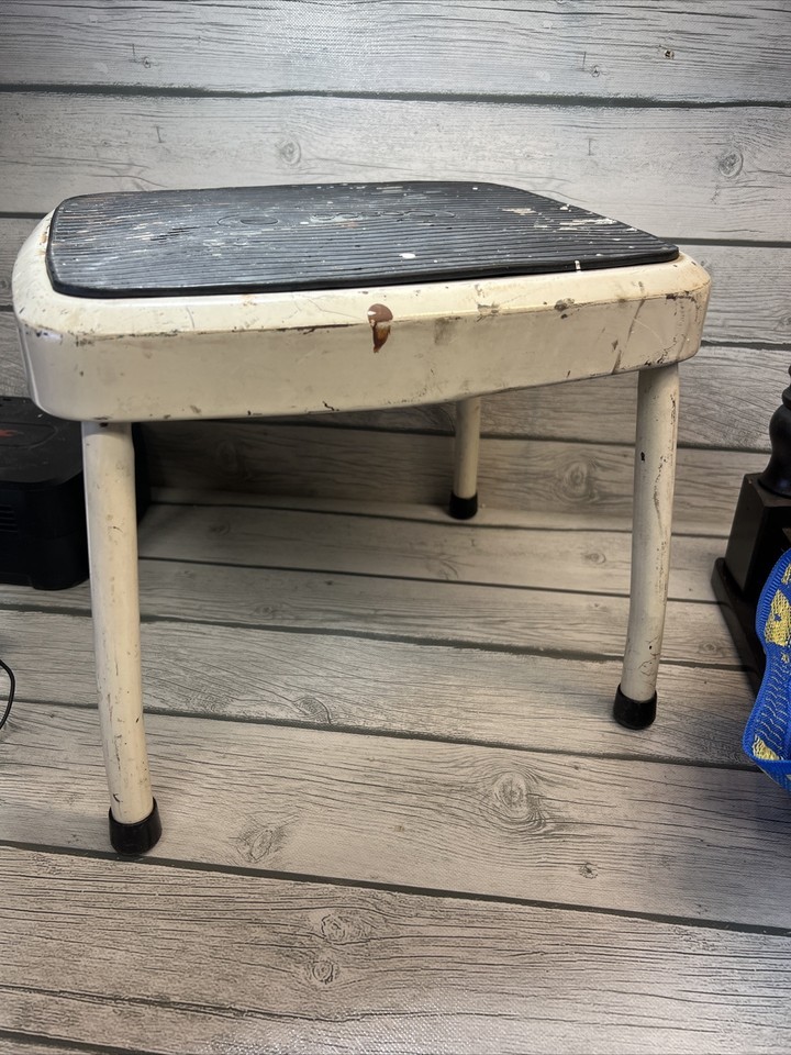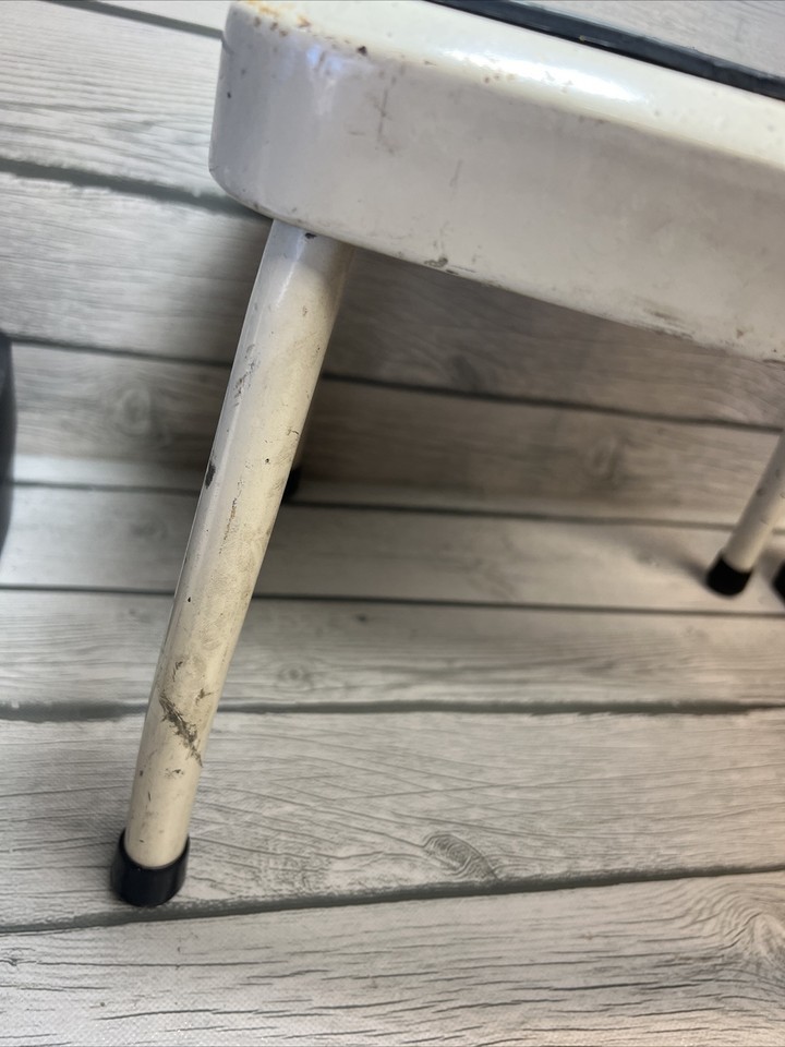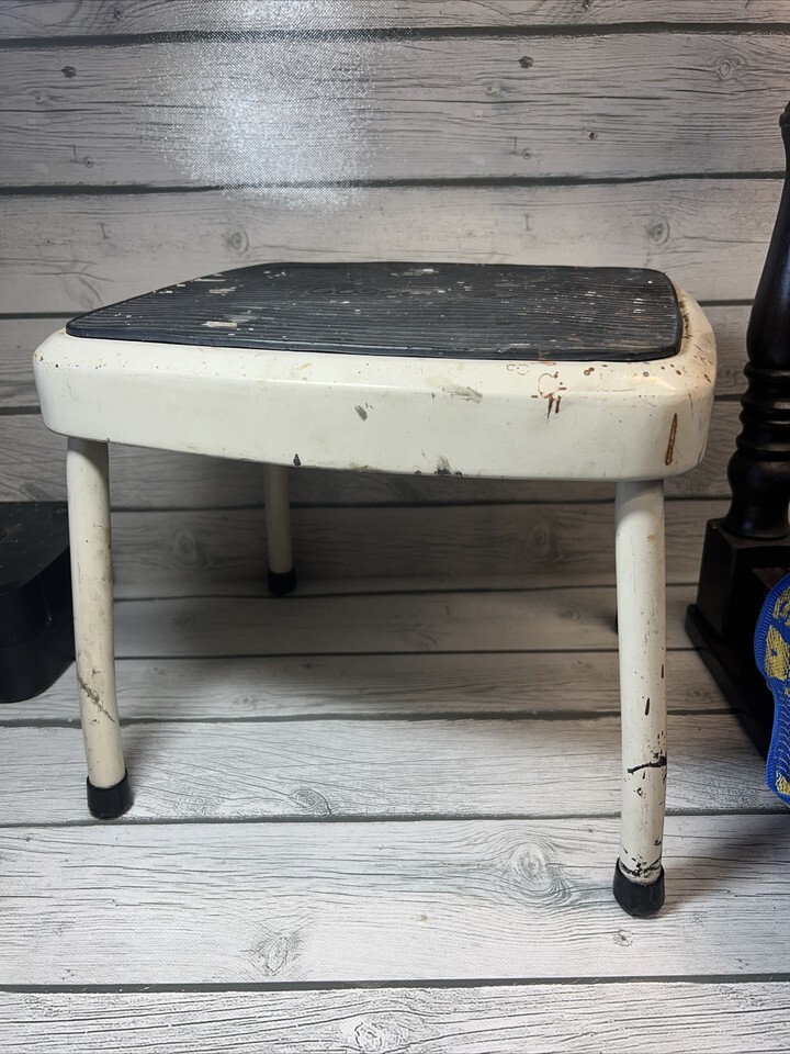 Vintage Mid Century Metal COSCO One-Step STOOL White Distressed 10” x 12”