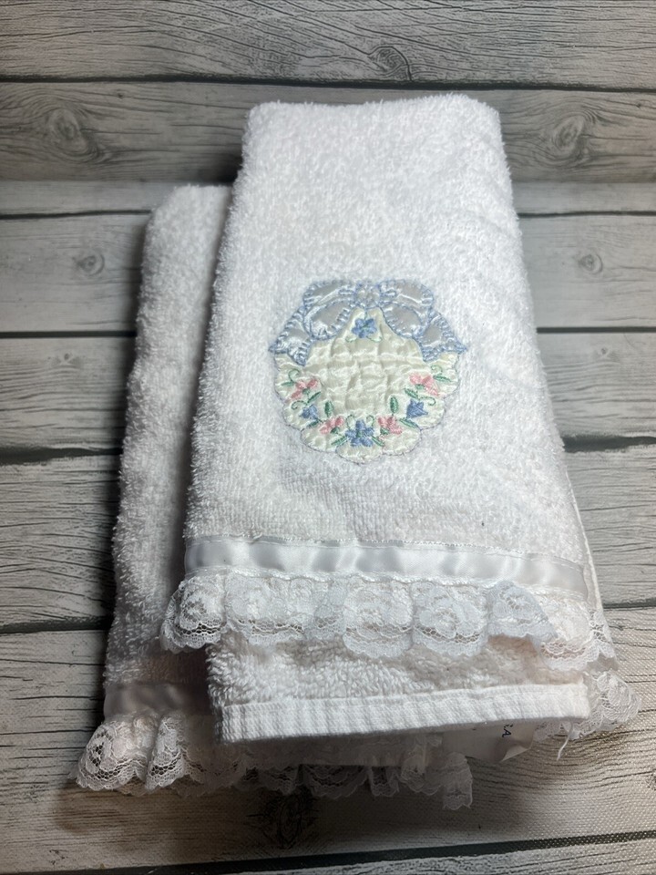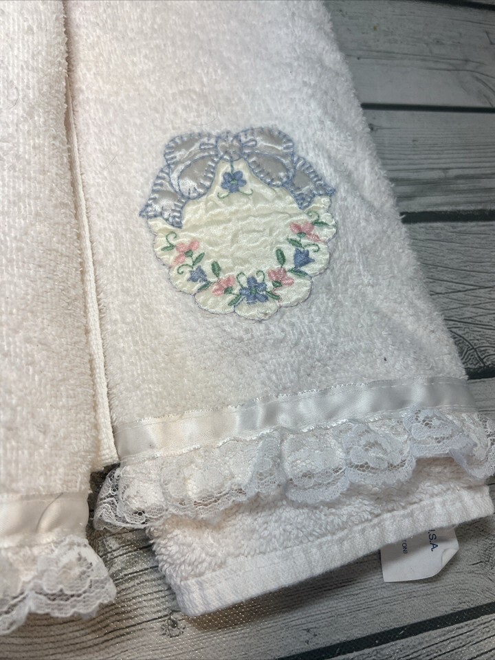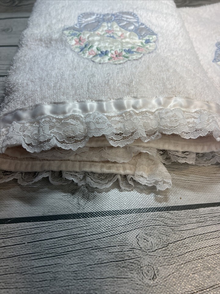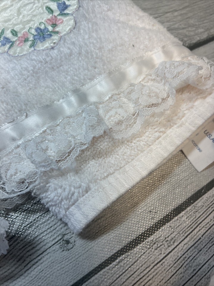 Vintage Shells Cottage USA Made 1 Bath 1 Hand Towel Light Pink Lace