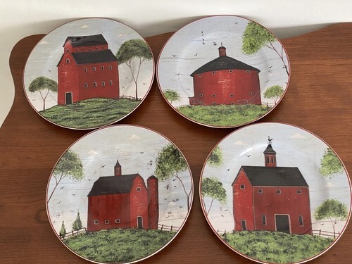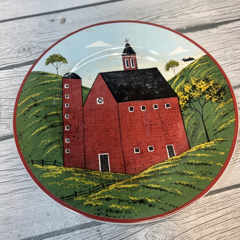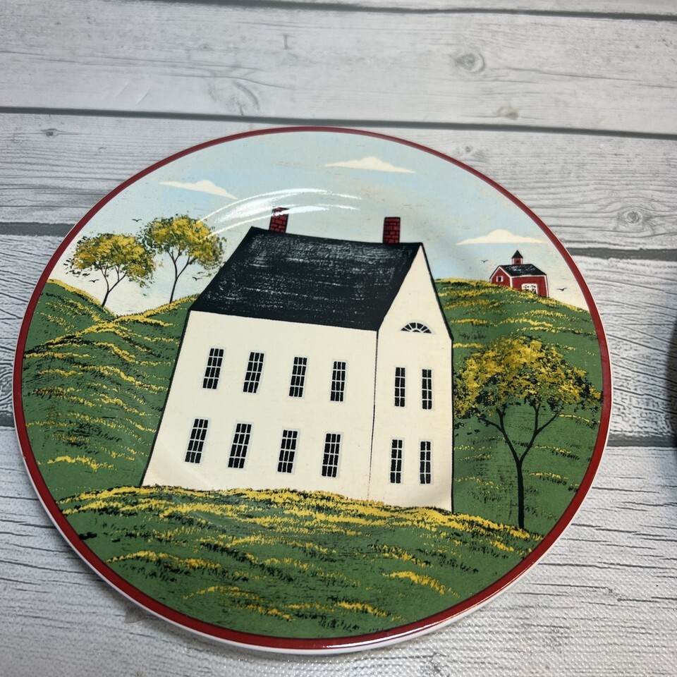 Brandon House "Country Life" Warren Kimble Salad Plates 8" Folk Art Barn Set 2