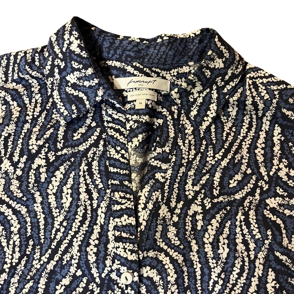 Foxcroft shirt, no iron blouse, wrinkle free shirt, women's 14, long sleeve shirt, cotton shirt, button front, Foxcroft Heritage, professional blouse, work shirt, travel shirt, easy care, non iron, crease resistant, business casual, office wear, career shirt, plus size 14, collared blouse