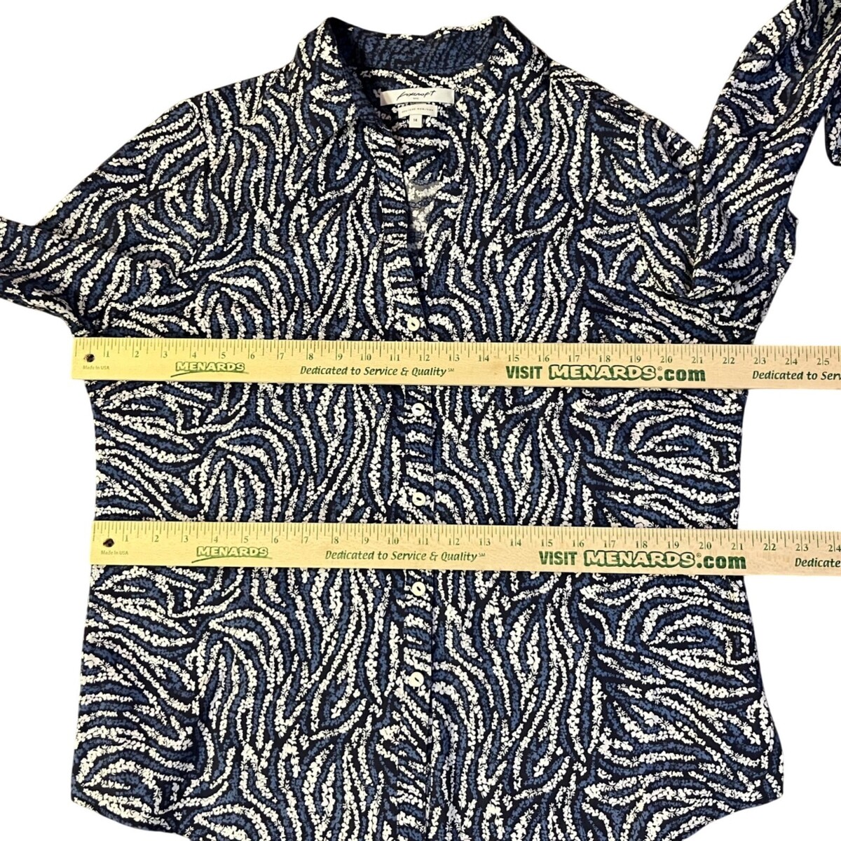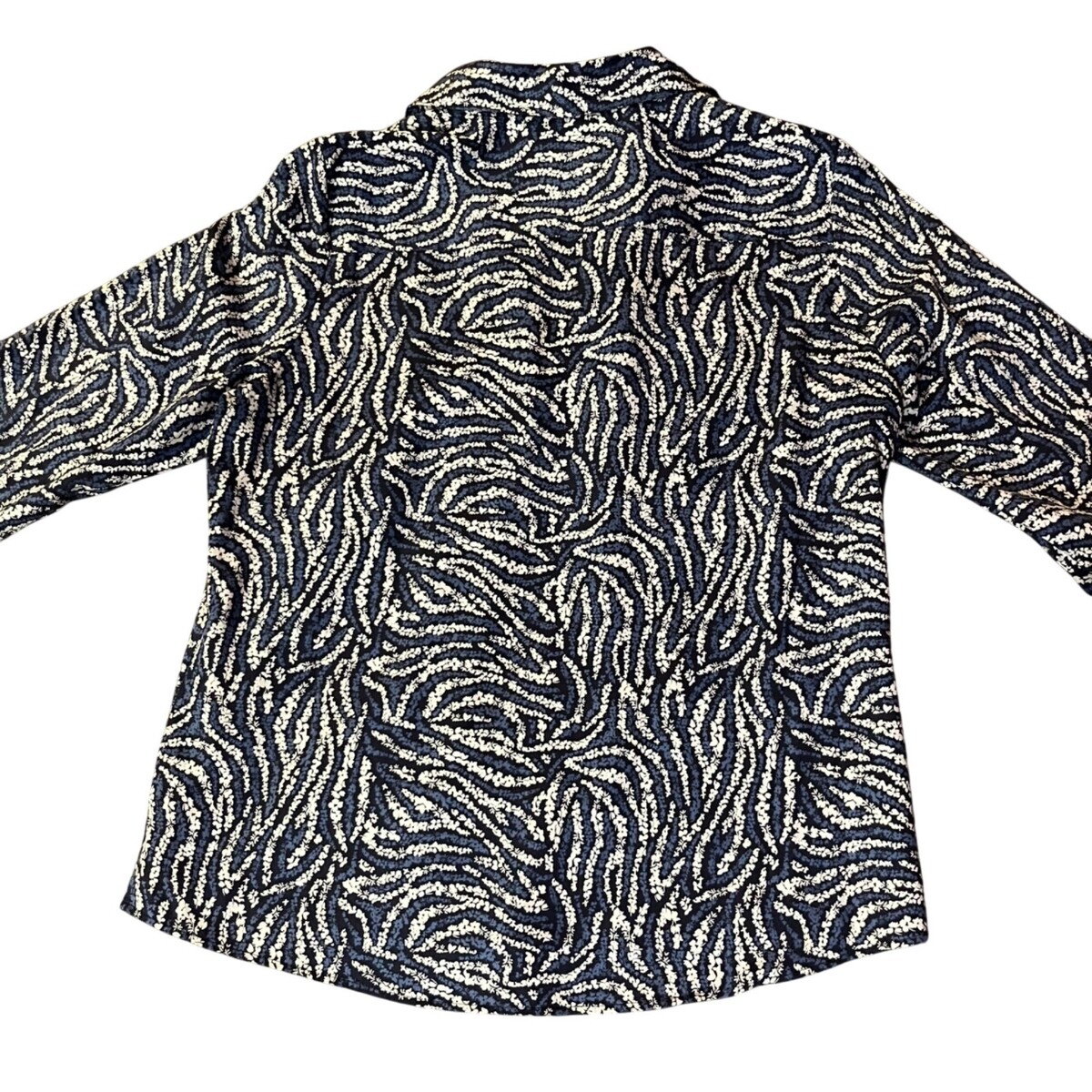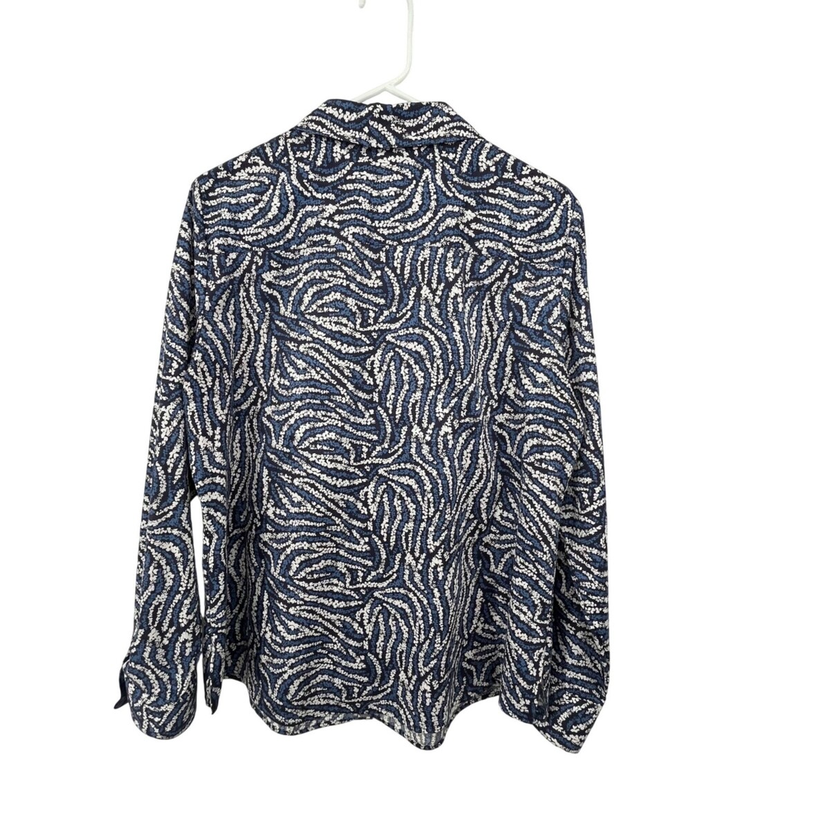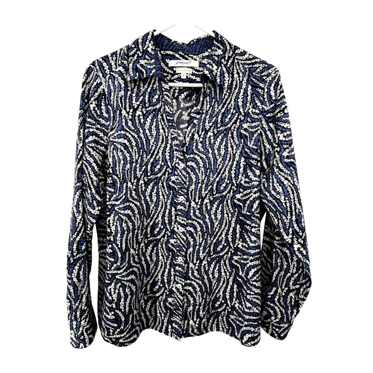 Foxcroft No-Iron Shirt Women's 14 Blue Black White Print Long Sleeve Used