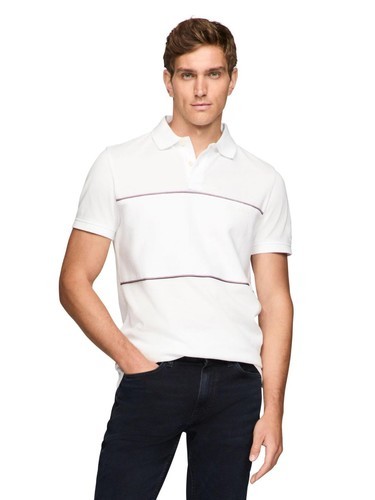 Tommy Hilfiger Men's Polo White Size 2XL Global Stripe Blocking Regular Fit