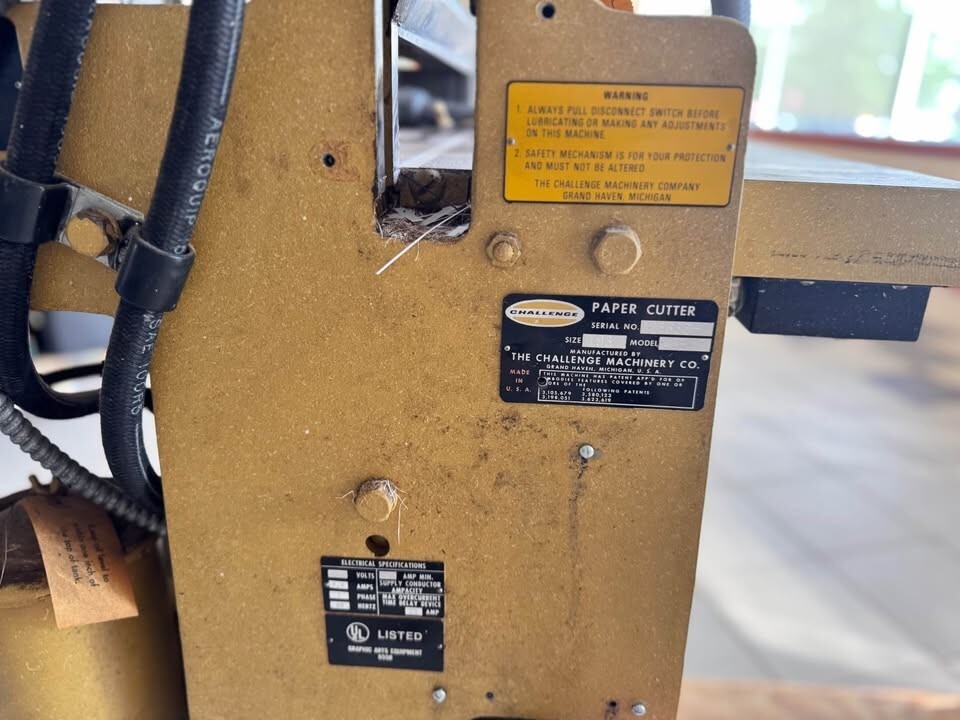 The Challenge HBE 193 19-3/8? Hydraulic Paper Cutter is a high-quality paper cutter designed for precision cutting of paper materials. With a cut length of 19.5 inches and hydraulic operation, this cutter from the Challenge HF 193 series ensures clean and accurate cuts for various printing and graphic arts projects. As a reliable and durable tool in the bindery and finishing equipment category, it is ideal for businesses and industrial settings that require efficient and consistent paper cutting capabilities.